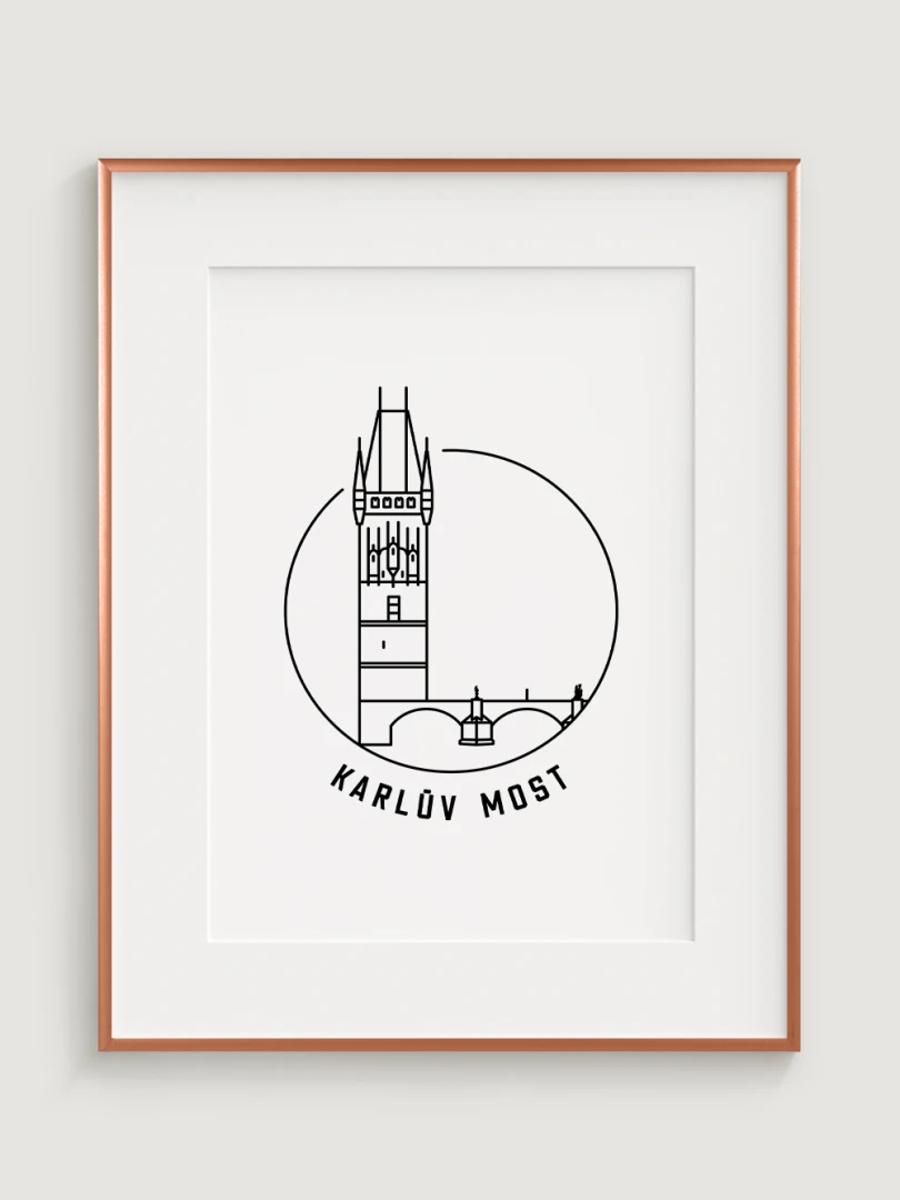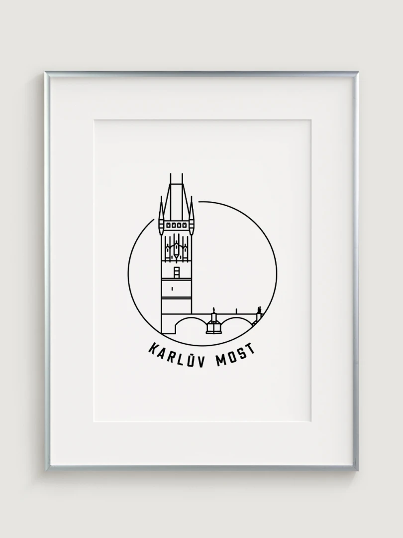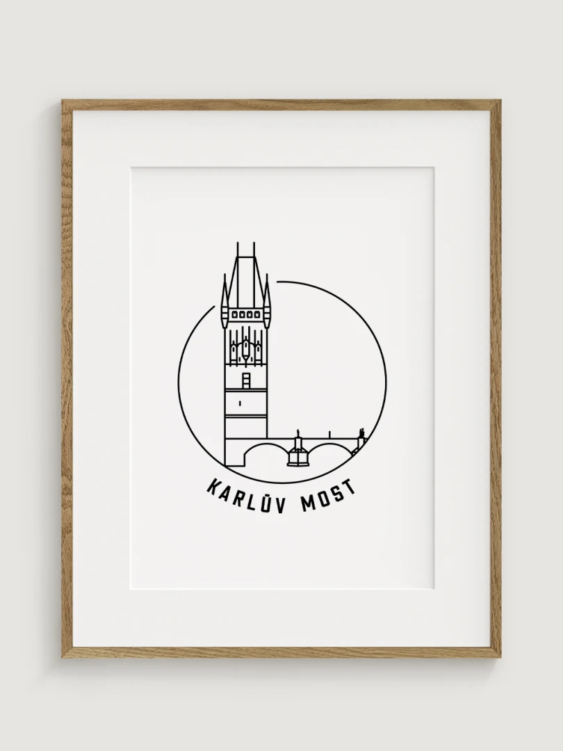 Tento print představuje stylizované, minimalistické zobrazení Karlova mostu v Praze, jednoho z nejkrásnějších a nejvýznamnějších architektonických skvostů města. Vytvořen jemnou černou linkovou kresbou na kvalitním papíře, tato ilustrace zachycuje detailní linie mostu a jeho soch v nadčasovém a elegantním stylu.