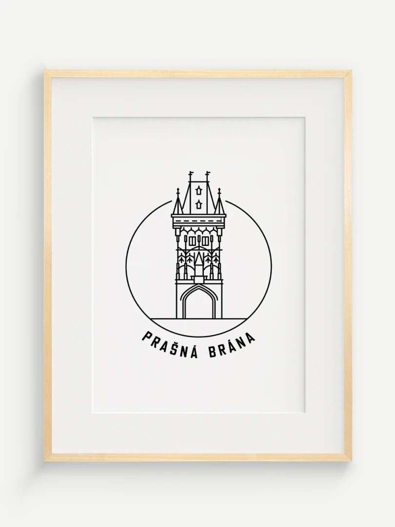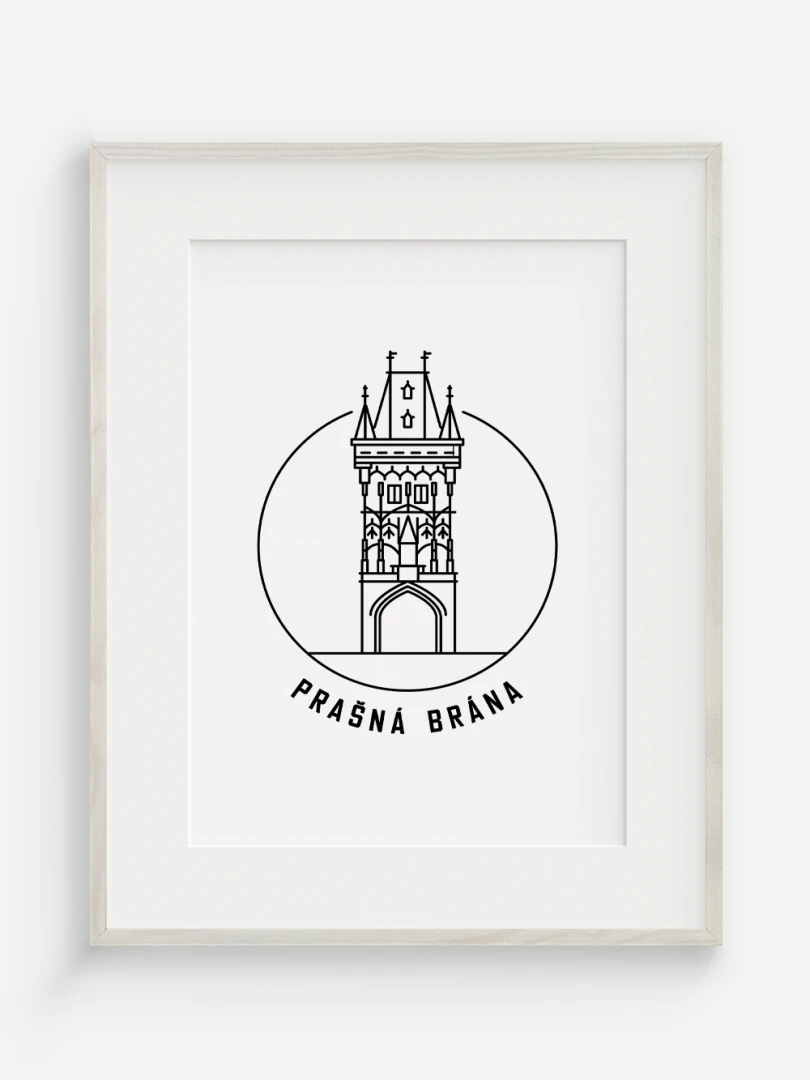 Tento print představuje stylizované, minimalistické zobrazení Prašné brány v Praze, gotické stavby, která spojuje středověkou krásu s moderním pohledem na architekturu. Vytvořen jemnou černou linkovou kresbou na kvalitním papíře, tato ilustrace zachycuje detailní linie a formy brány v nadčasovém a elegantním stylu.